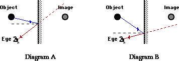 the same distance from the Plexiglas as the object. The size of the image is the same as the